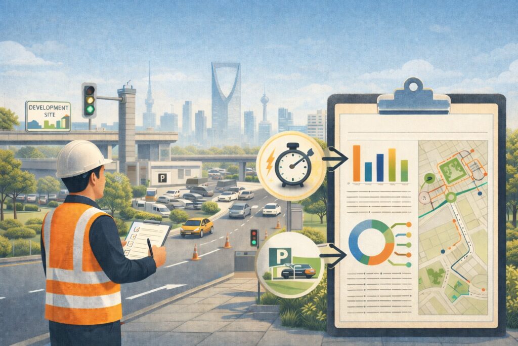 مع النمو العمراني المتسارع في مدينة الرياض، لم تعد الجهات المختصة تنظر إلى المشاريع بمعزل عن تأثيرها على الحركة المرورية. أي مشروع جديد أو توسعة قائمة تعني رحلات إضافية، مداخل ومخارج، ومواقف سيارات—وكلها عناصر قد تسبب اختناقات أو مخاطر إذا لم تُدرس بشكل علمي.